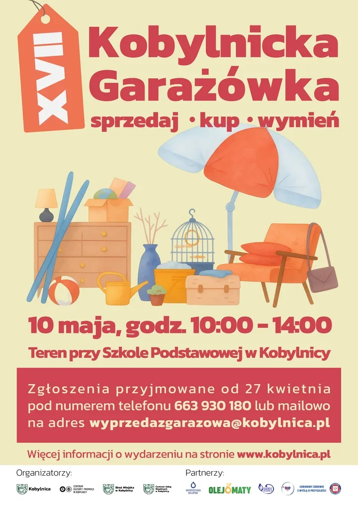 Na placu przy szkole w Kobylnicy znów pojawią się stoły pełne książek, ubrań, zabawek i drobiazgów, które tylko czekają na nowego właściciela. XVII Kobylnicka Garażówka ma być czymś więcej niż zwykłą wyprzedażą – to spotkanie handlu, ekologii i sąsiedzkiej energii w jednym miejscu. Organizatorzy liczą na tłum odwiedzających, ale też na wystawców, którzy zdążą zgłosić się wcześniej. Miejsc będzie mniej niż chętnych, dlatego warto pilnować terminu.