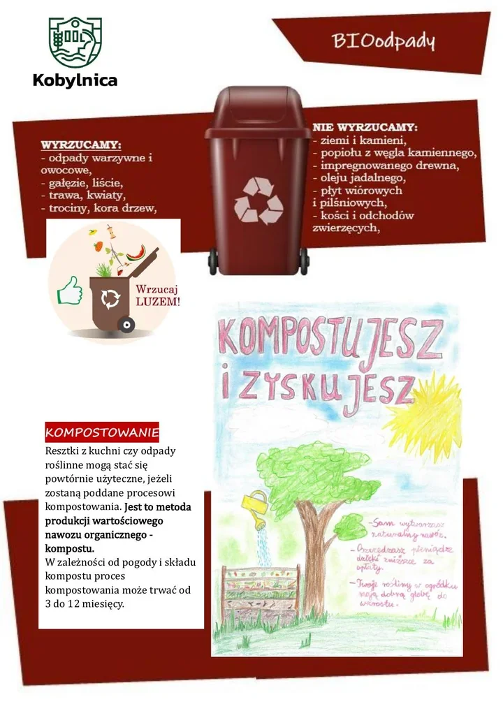 Wiosenny ogrodowy rozgardiasz zaczyna się zwykle niewinnie – od kilku garści trawy, paru gałązek i liści, które szybko rosną w stos. W Kobylnicy zwracają uwagę, że taki zestaw nie powinien trafiać byle gdzie. Bioodpady można oddać w brązowym pojemniku, zawieźć do PSZOK w Słupsku albo przerobić na kompost, który wróci do grządek zamiast zajmować miejsce w worku.
